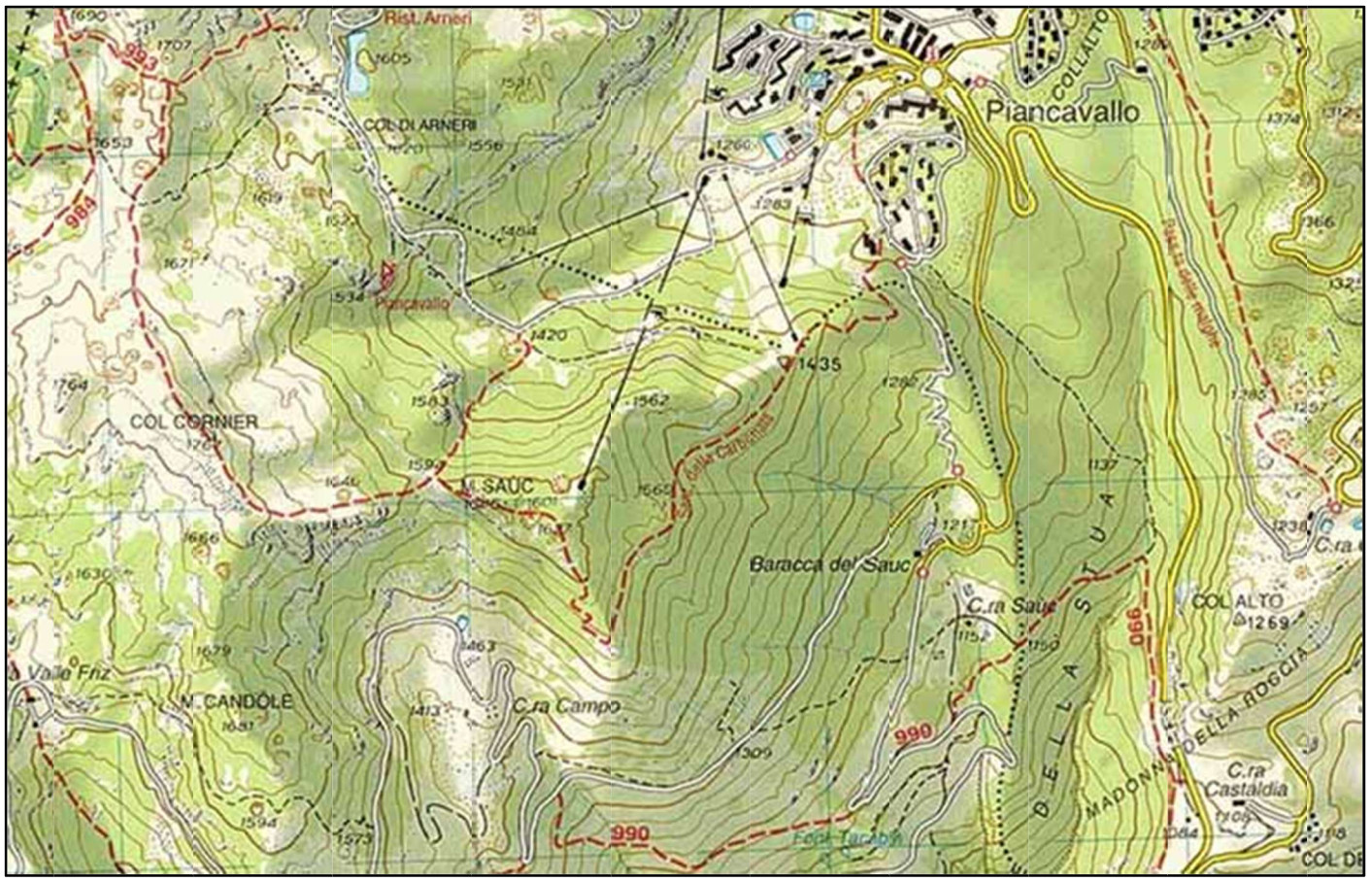 Piancavallo (1270) – Sella Sauc (1594) – Col Cornier (1767) – Sella Sauc (1594) – Casera Campo (1420) – Piancavallo (1270)
